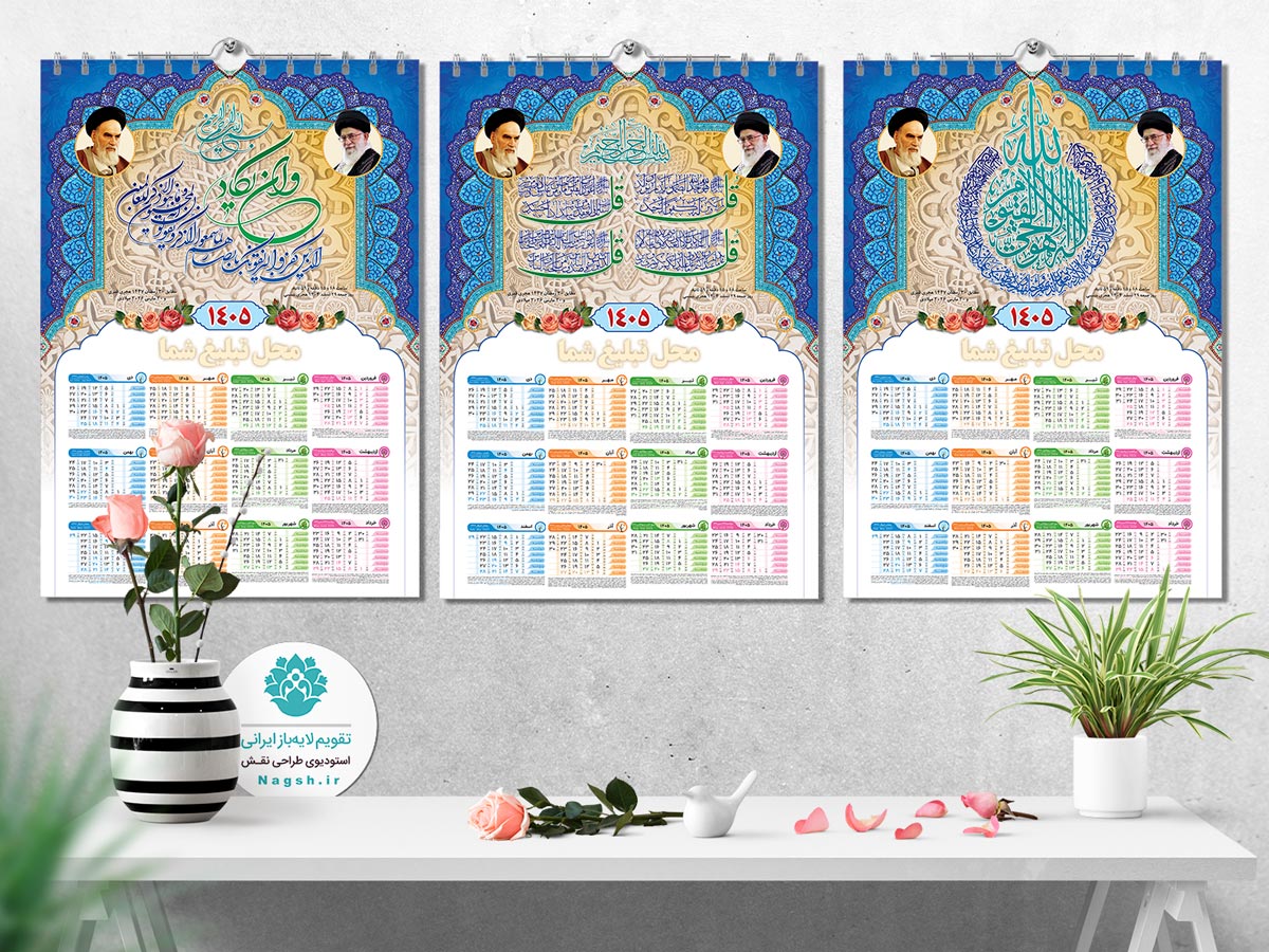 این تقویم مذهبی 1405 با طرحهای «وان یکاد» ، « 4 قل» و «آیت الکرسی» با کیفیت عالی، آماده چاپ میباشد.