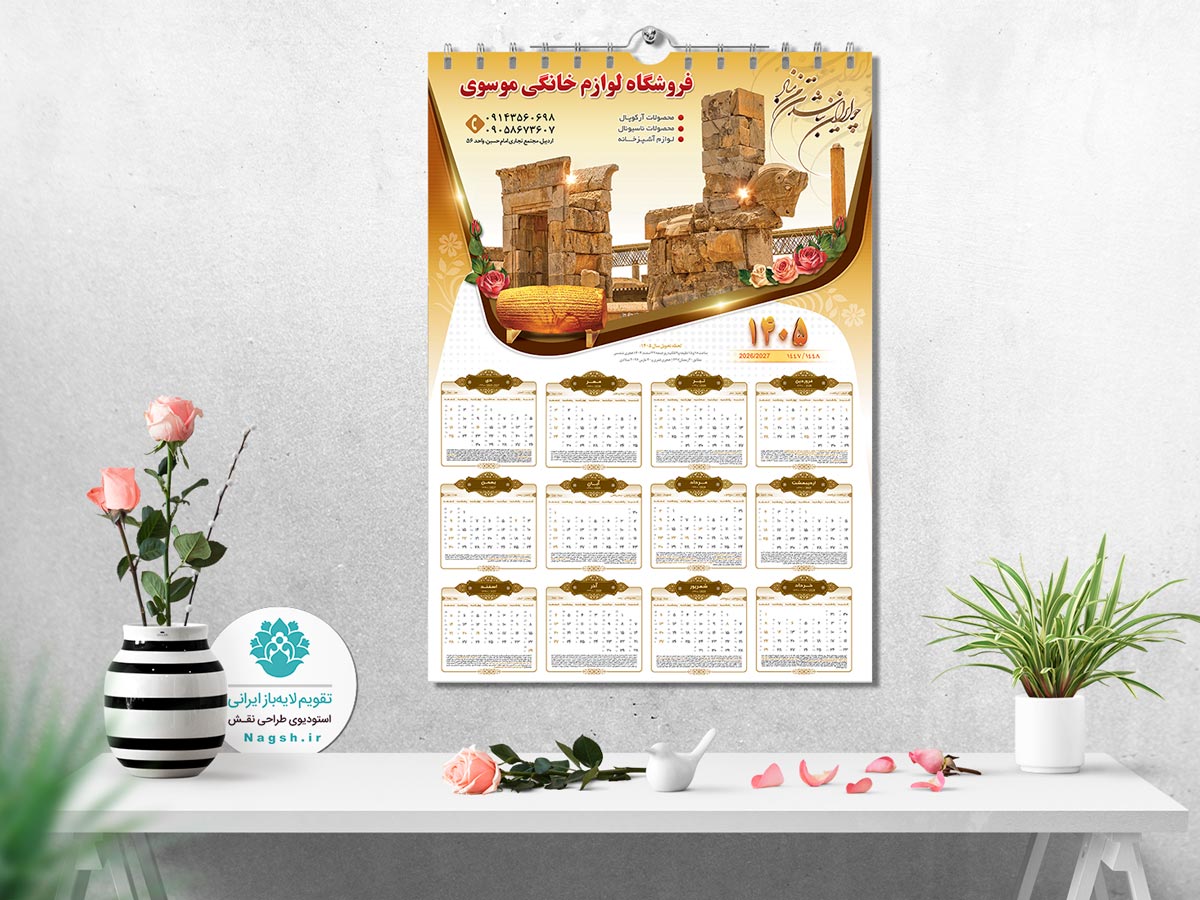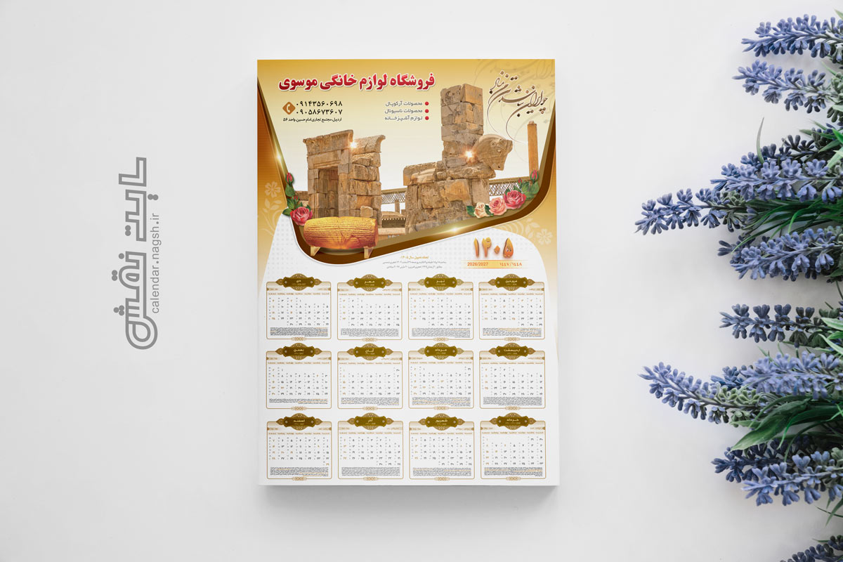 در این تقویم دیواری 1405 باستانی از نماد تخت جمشید ، منشور کوروش استفاده شده است.