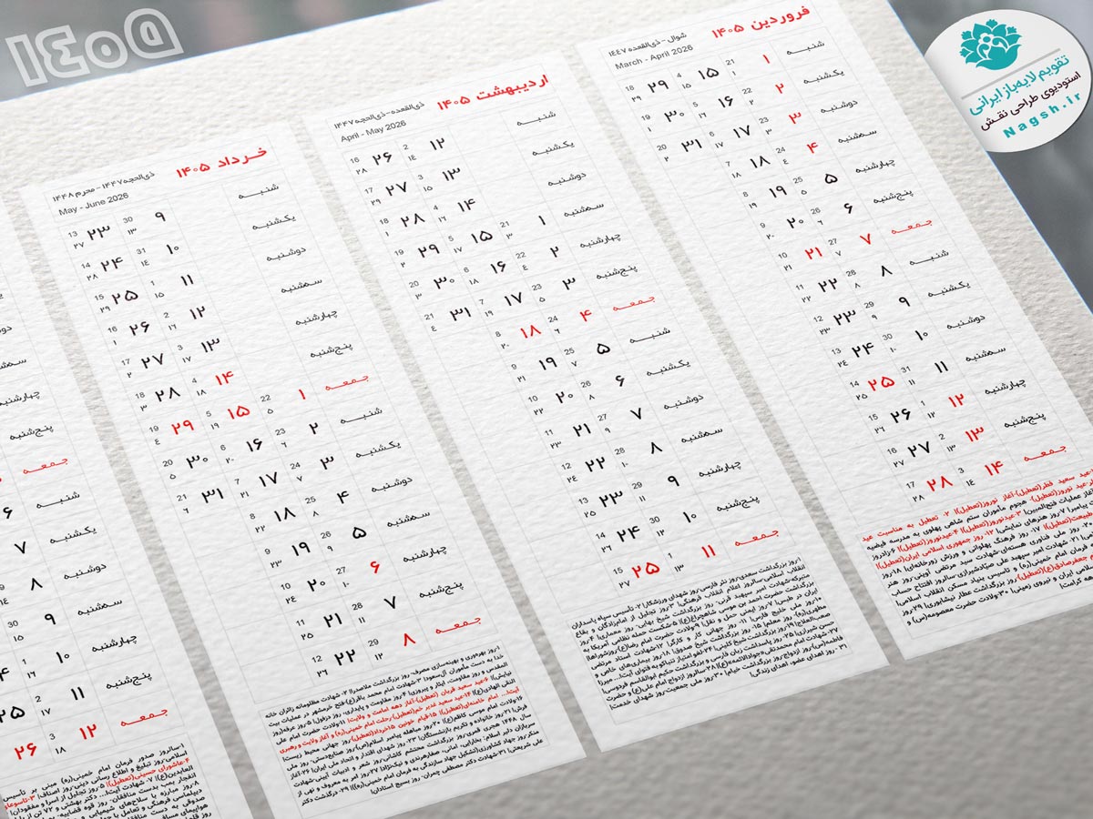 تصاویر پیش نمایش تقویم لایه باز 1405 (طرح سپید) را در زیر مشاهده کنید: