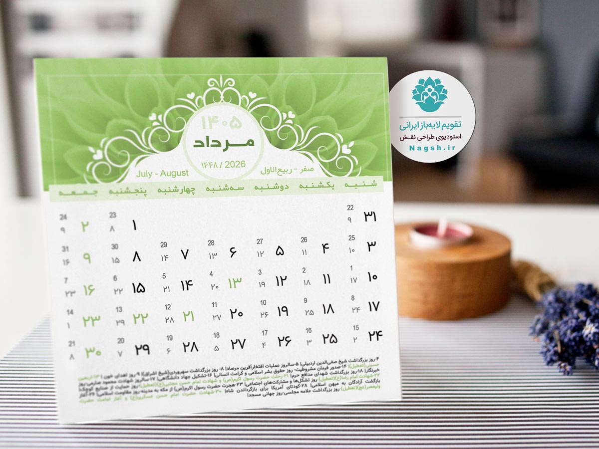 تصاویر پیش نمایش تقویم لایه باز (طرح فلورا) را در زیر مشاهده کنید: