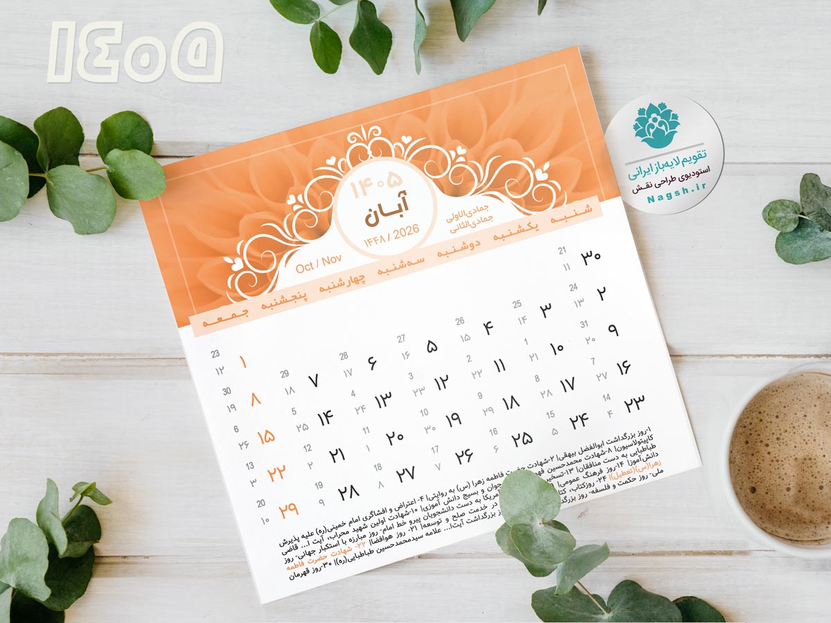 دانلود تقویم 1405 (طرح فلورا) در فرمت فتوشاپ