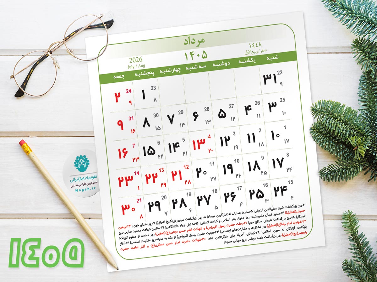 تقویم سال 1405 بصورت لایه باز و قابل ویرایش بصورت رایگان